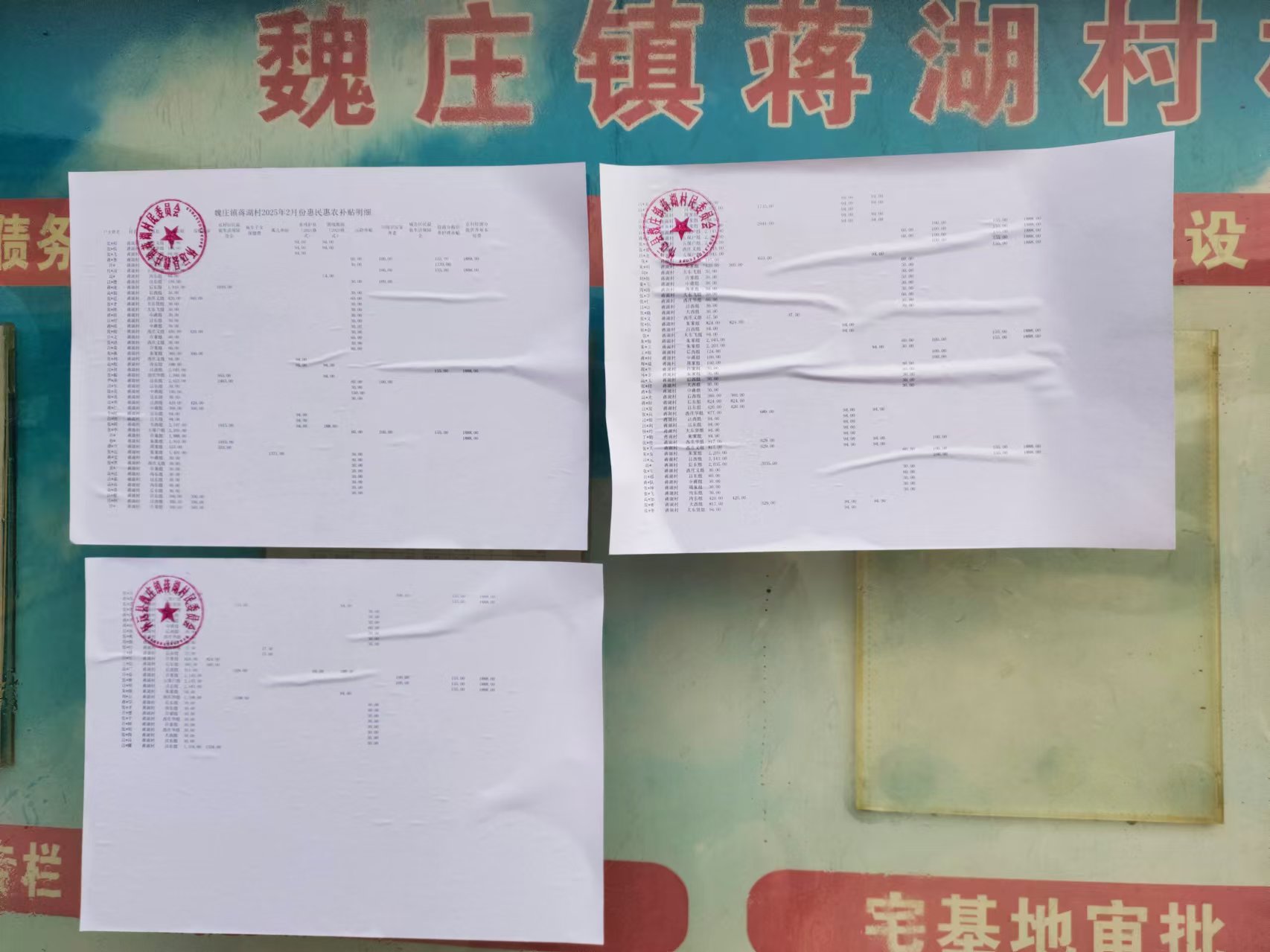 魏庄镇2025年2月份惠民惠农财政补贴资金发放情况线下公开照