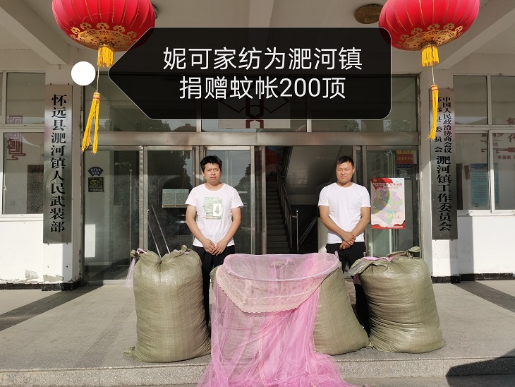 妮可家纺为淝河镇禁烧捐赠蚊帐200顶